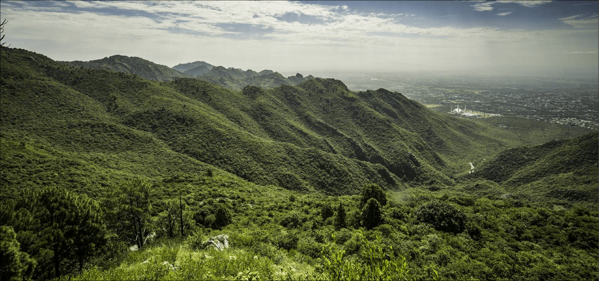 Margalla ridge. This track is 44 kms in length. It starts from Shah Allah Ditta or Kainthlan village nearby and goes towards Talhar and ends at Dunga Gali. First part of trail starts at Kainthlan village, Shah Allah Ditta caves and goes towards Talhar. From Dino valley you enter the trail again and 9 kms walk takes you to village Pharrila.